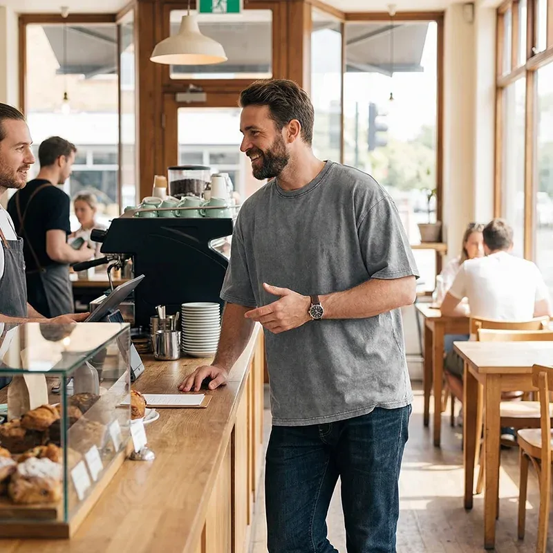 James T.Super comfy tee, love the loose fit. Feels soft against the skin and keeps me cool on warm days. Looks good with joggers or jeans.