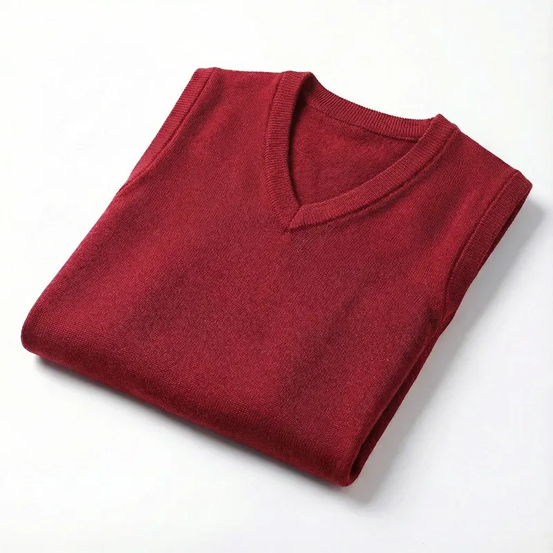 Crafted from soft cotton blend, this sweater vest offers comfort and breathability throughout the day. The V-neck design adds a touch of sophistication, perfect for layering over shirts or tees. Available in versatile colours, it complements various wardrobe pieces. It is ideal for both office wear and casual outings, transitioning seamlessly between settings. The vest maintains its shape, softness, and appearance after multiple washes.