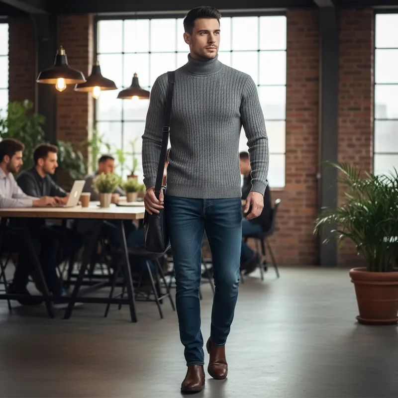 Crafted with premium fibres, this knit offers reliable insulation against chilly winds. A high neckline shields effectively, locking in heat when temperatures drop. The fabric feels soft on the skin, ensuring lasting comfort throughout your daily routine. Its versatile design layers smoothly and helps create both casual and formal looks easily. Durable stitching maintains shape after washing, providing confidence in quality with every wear.