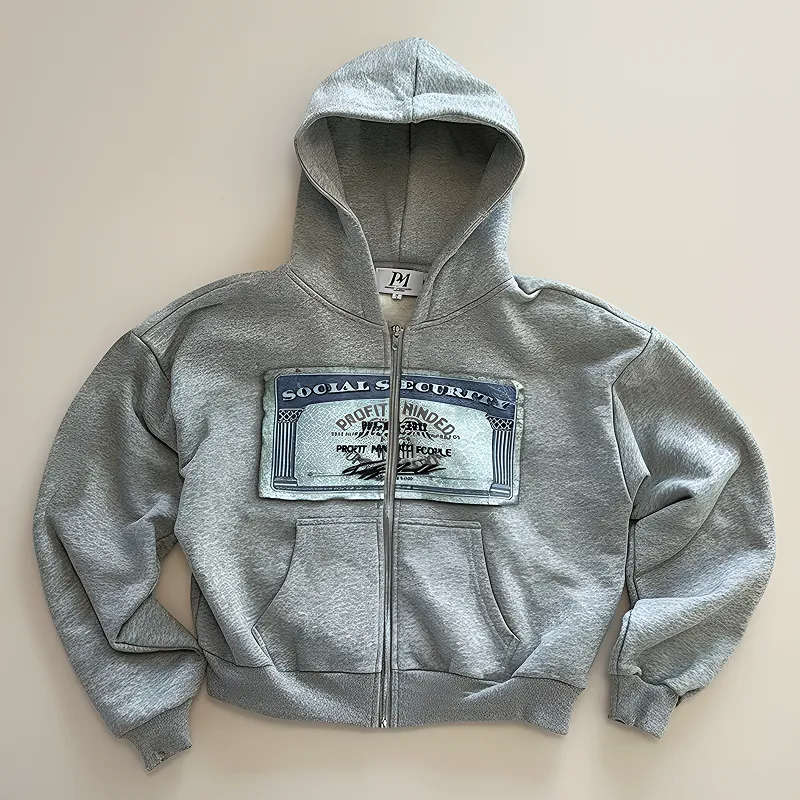 Vintage Printed Zip-Up Hoodie