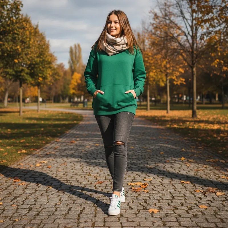 This fleece-lined hoodie combines warmth and fashion, making it a must-have for the cooler months. The soft interior traps heat, keeping you snug without the bulk. Its versatile design pairs well with various outfits, from casual jeans to sporty leggings. The hood offers added protection against the wind, while the relaxed fit promises comfort during activities. Whether you're running errands or enjoying a weekend outing, this hoodie is your go-to choice. It ensures you stay stylish and comfortable throughout cold seasons.
