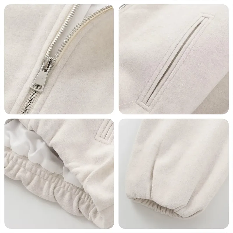 Designed to complement your look, this piece combines chic shape with functionality. The cropped cut enhances your silhouette and adds contemporary appeal. Durable stitching ensures long-lasting wear without compromising flexibility. Zipped pockets provide a safe place for your valuables and help keep your hands warm. Pair this jacket effortlessly with denim, skirts, or tailored trousers for instant style.