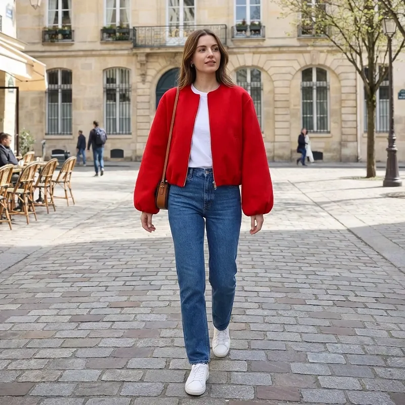 Really loving this cropped jacket! It looks great with all my jeans and even goes well with dresses. The pockets are super useful and cozy.