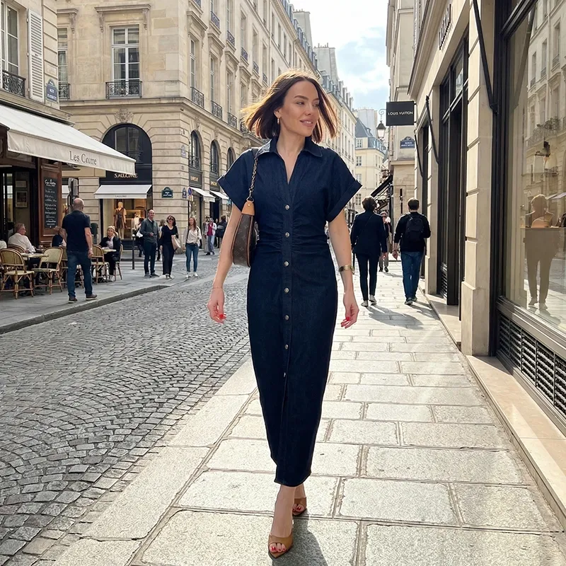 I really like how this midi dress works for work and weekends. The denim isn’t heavy, and I can move around comfortably. Highly recommended!