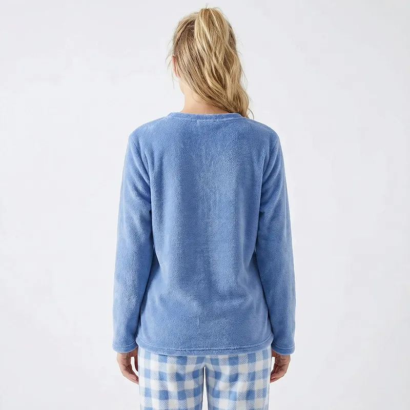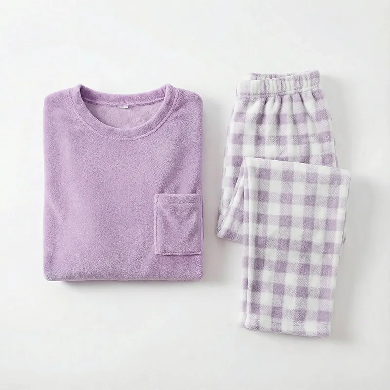 Women’s Fleece Solid Top and Plaid Pants Pajama Set