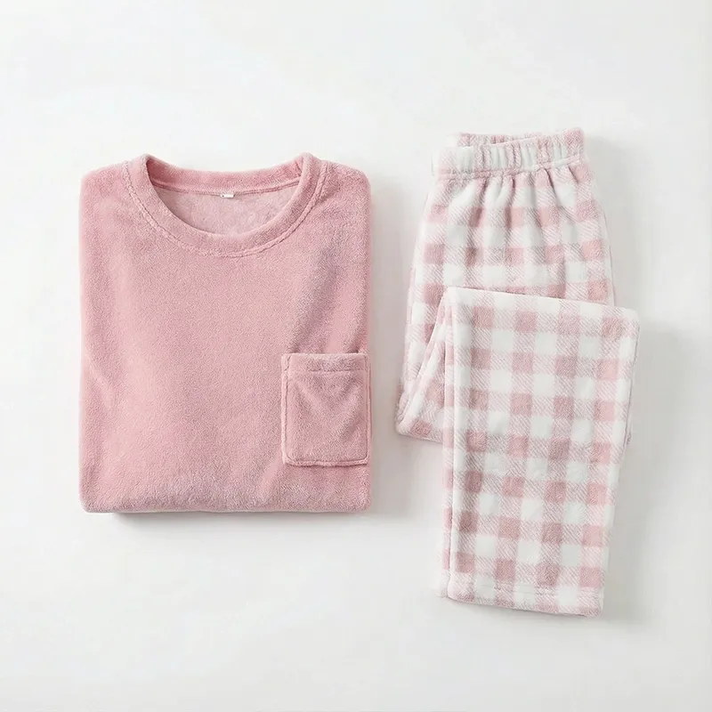 Soft fleece provides cosy warmth during cool nights, enhancing your relaxation experience. The plaid trousers add a timeless flair, giving your attire a fashionable touch. Designed with a relaxed fit, the set allows effortless movement and lasting comfort. Gentle against the skin, the materials ensure soothing wear throughout quiet evenings. Combining elegance with practicality, this outfit transforms ordinary lounging into a stylish daily ritual.