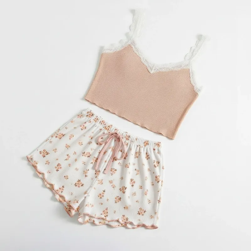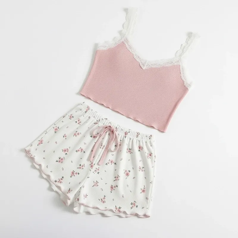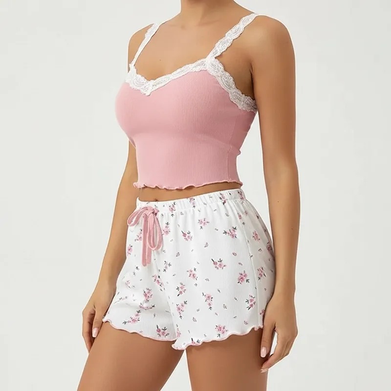 These pyjamas promote airflow, keeping the body fresh throughout warm nights. Soft, smooth material feels pleasant against the skin, creating a cosy, relaxing atmosphere. This longewear allows unrestricted movement while maintaining a flattering silhouette. Elastic waistband shorts provide flexible support, ensuring comfort during sleep, exercise, or leisurely lounging. Durable construction ensures long-lasting wear, retaining its softness and shape after repeated use.
