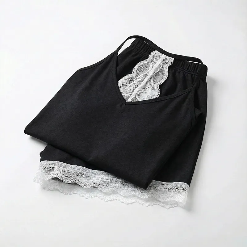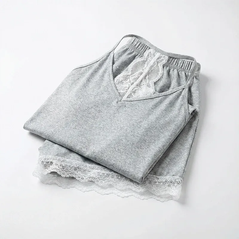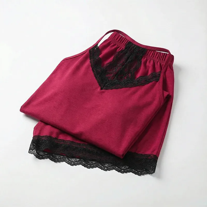 This lace pajama set adds a sophisticated touch to your loungewear. The high-quality fabric ensures comfort, allowing you to relax and unwind with ease. It lets the skin breathe, keeping you cool throughout the night and promoting restful sleep. Designed with a flattering fit, it enhances your natural silhouette gracefully. Easy to care for, this set maintains its quality and softness after multiple washes.